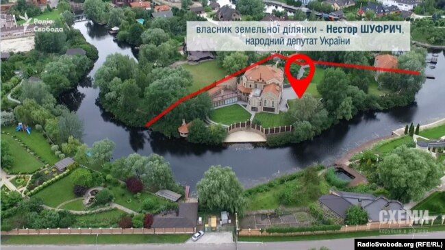 Невідомі охоронці забороняють знімальній групі «Схеми» виходити із човна на берег поруч із будівлями народного депутата України групи «Відродження» Валентина Ничипоренка. Хоча, відповідно до Конституції, кожен громадянин має право будь-де пройти до берега української річки. Ділянки, які орендує депутат, розташовані в Гнідині Бориспільського району на Київщині.
