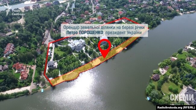 «Ця, скажімо так, резиденція нашого президента Порошенка раніше була базою відпочинку, яка належала кондитерській фабриці імені Карла Маркса, яку він потім придбав, – і зараз вона «Рошен». Її протяжність приблизно більше ніж кілометр. Там буйки червоні стоять, навіть заборонено пропливати на човні», – розповідає місцевий житель Козина Олександр Бовкун.